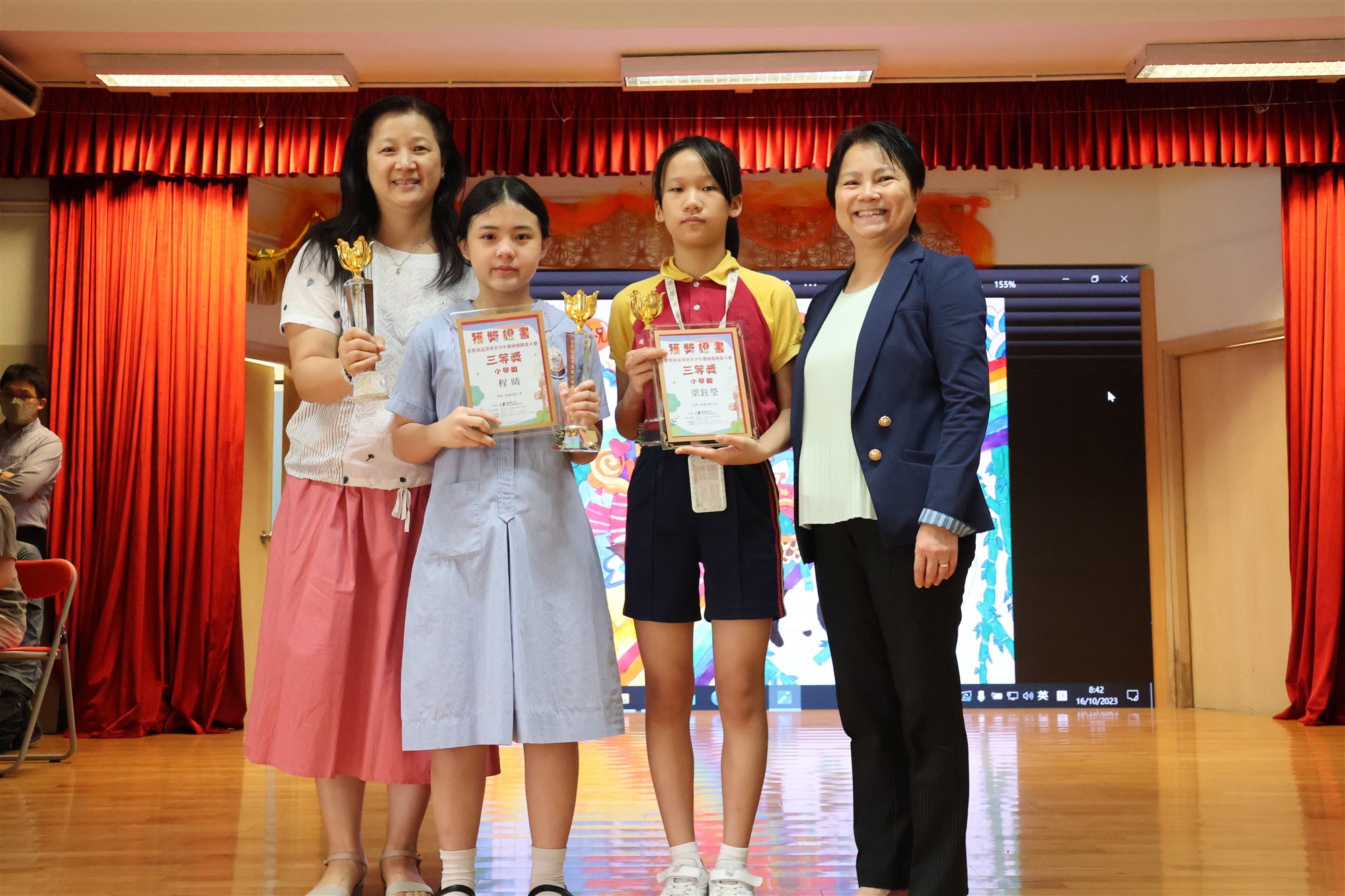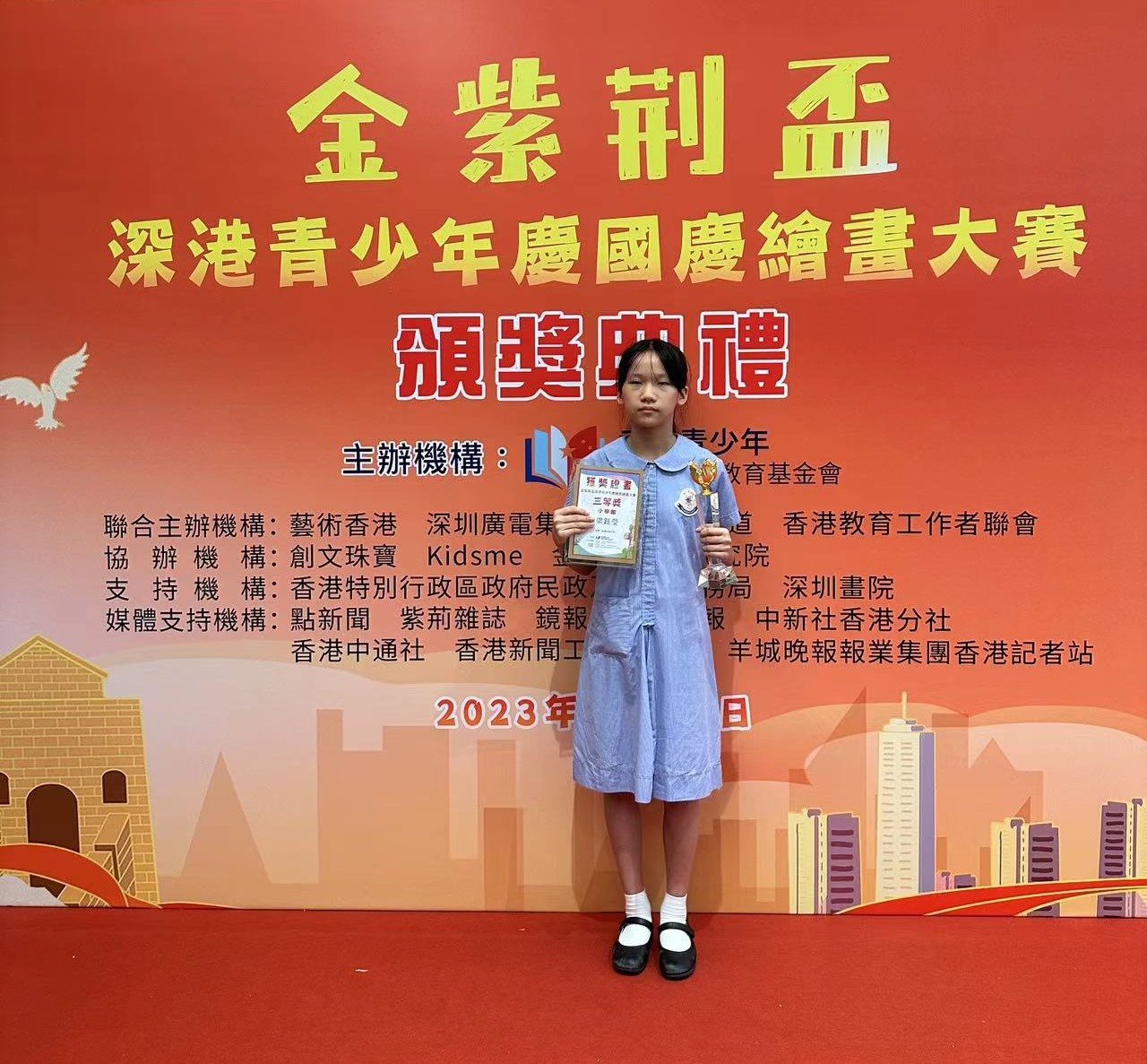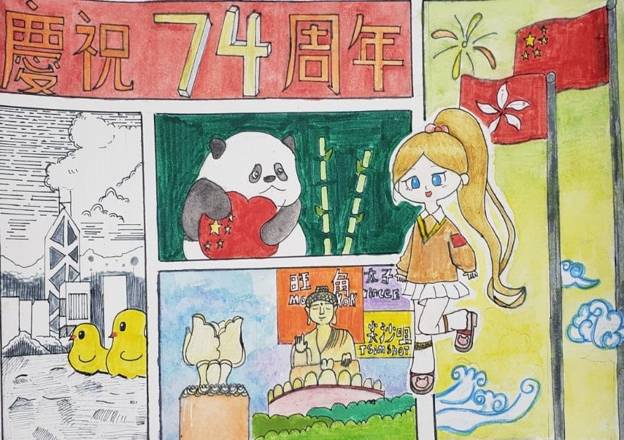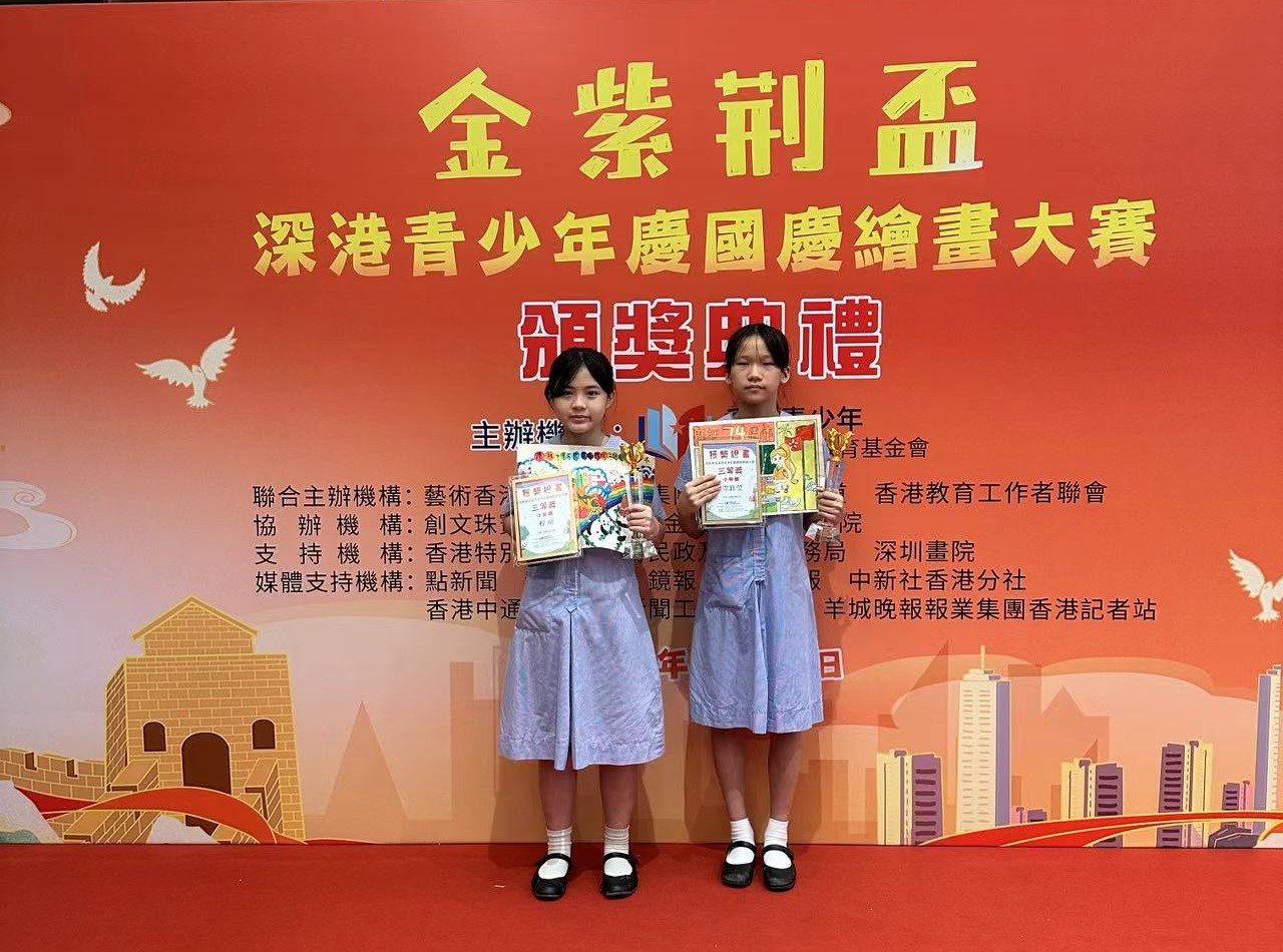 本校參加由藝術香港主辦的「金紫荊盃深港青少年慶國慶繪畫大賽 —慶祝中華人民共和國成立 74 周年」,4B梁鈺莹及5E程晴獲得三等獎。