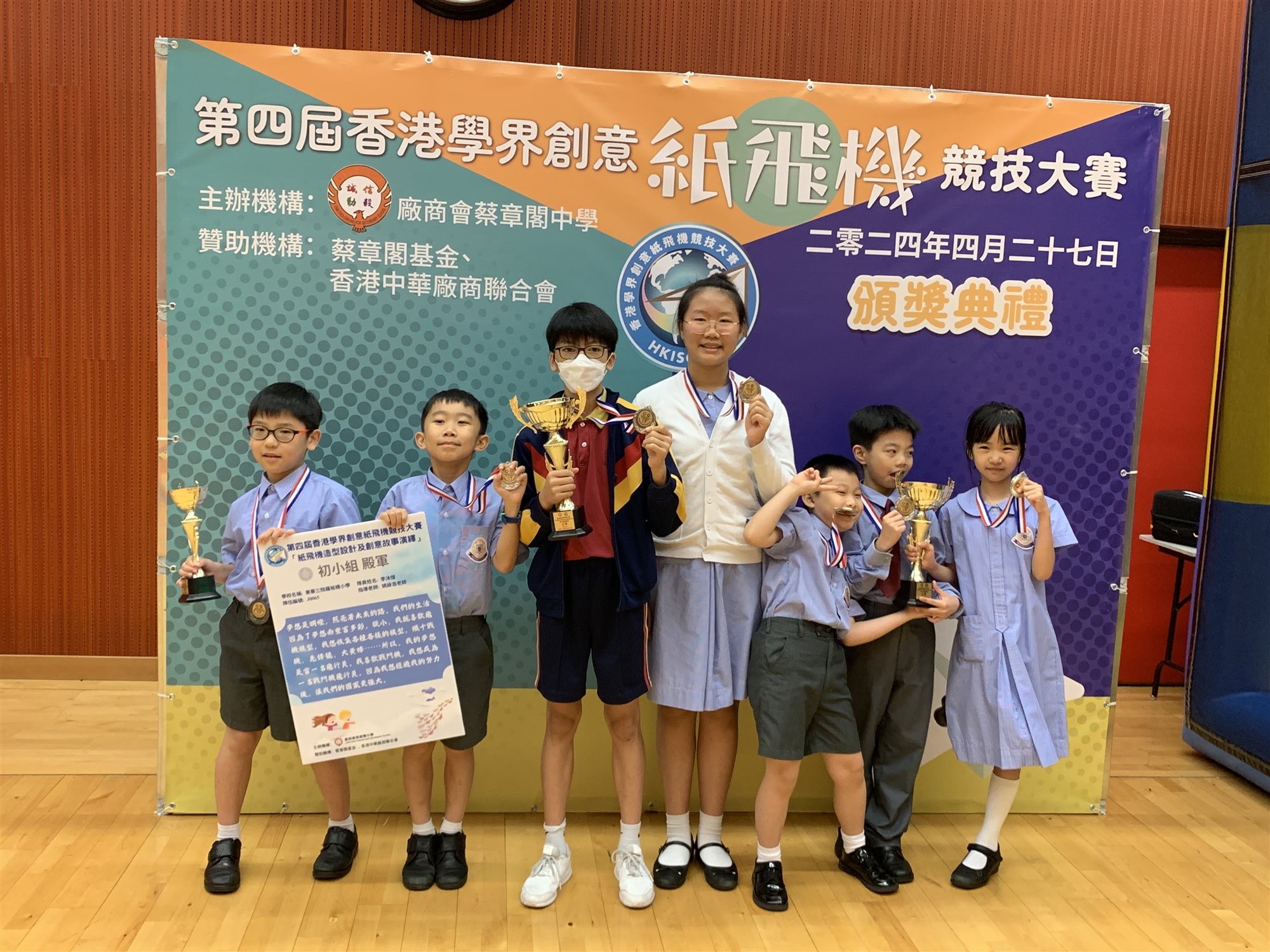 參加由廠商會蔡章閣中學主辦的第四屆香港學界創意紙飛機競技大賽,2A陳炯城、張梓軒、3D王善童獲得飛行距離最遠(初小組)亞軍;4C方富恆、6B梁家豪、梁頌恩獲得飛行距離最遠(高小組)亞軍;3D李沐傑獲得紙飛機造型設計及創意故事演繹(初小組)殿軍。