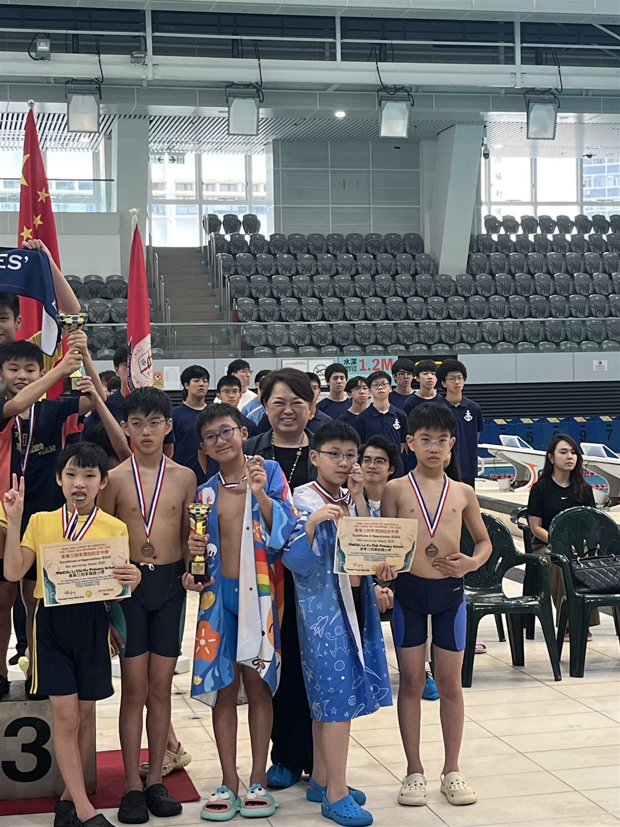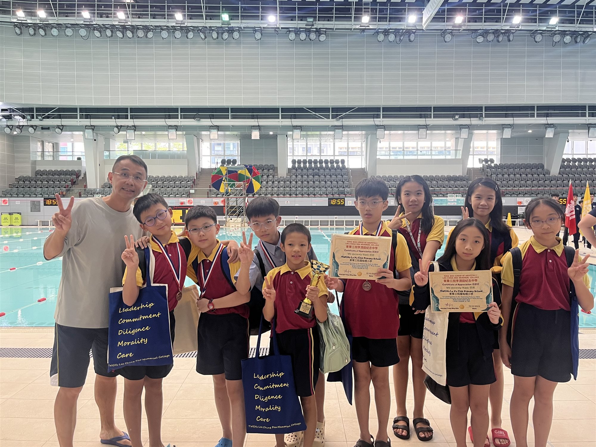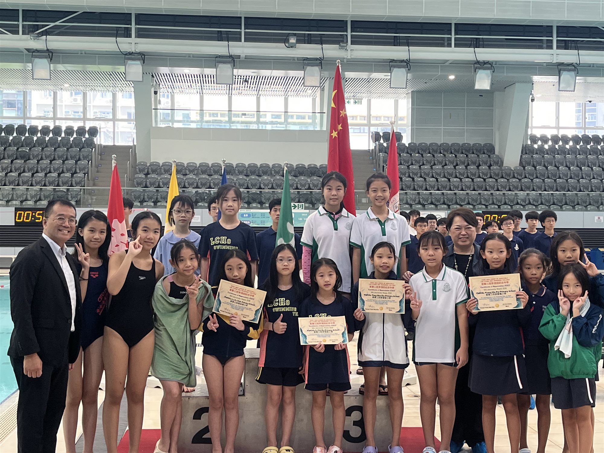 本校獲東華三院李潤田紀念中學邀請於10月10日參加東華三院李潤田紀念中學55周年校慶水運會「小學組接力比賽」,本校游泳隊隊員除寓操於賽外,亦取得獎項和豐富的紀念品,可說滿載而歸。