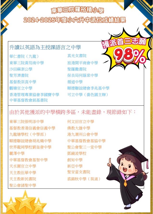 2024-2025年度本校小六升中派位成績結果