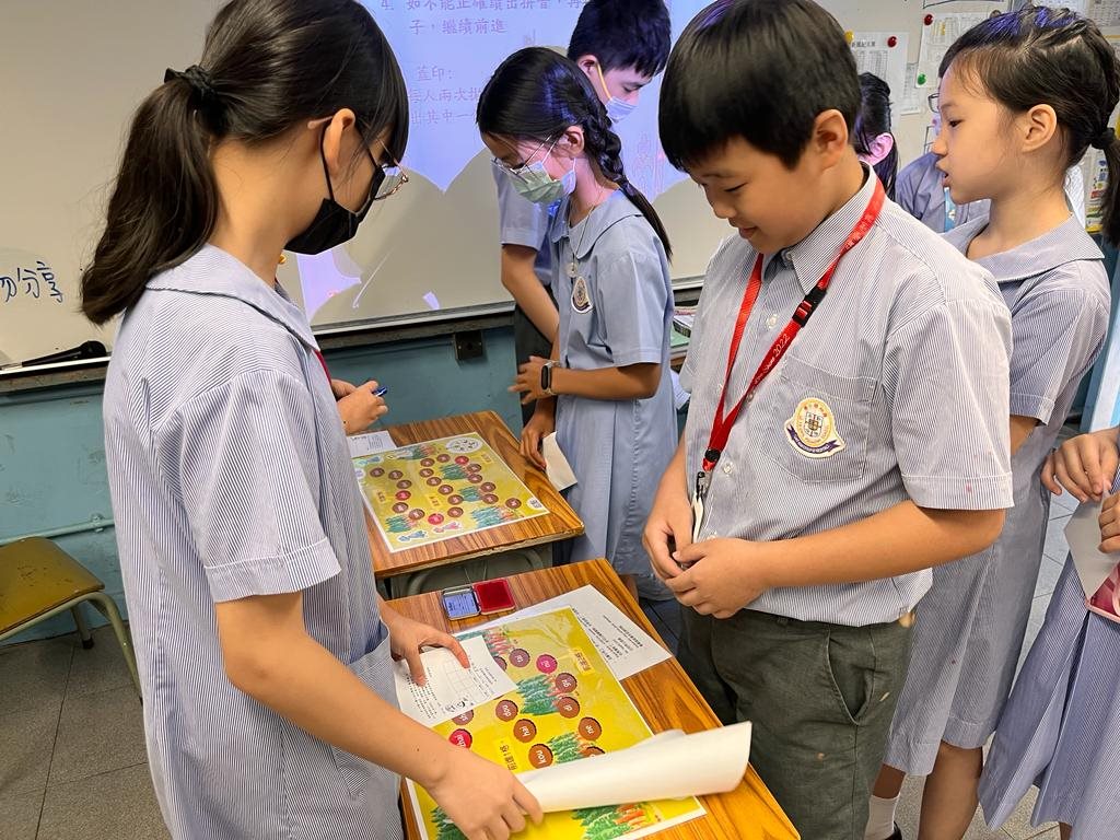 為學生創設應用普通話的空間,在上課前先進行課前一分鐘分享--「我欣賞(誰)的真誠/守規/處事負責任/勤勞……」活動。